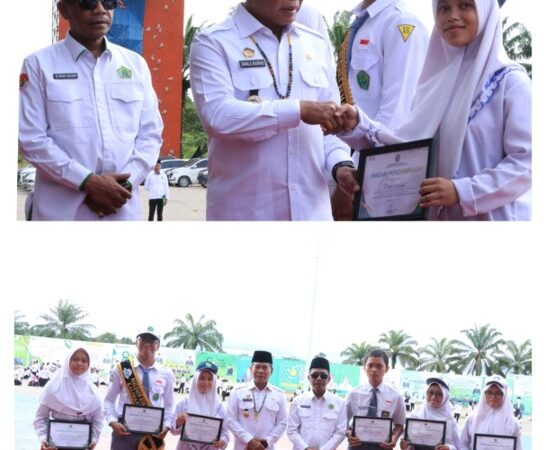 Tanjung Selor (Humas MTsN Bulungan)- Kepala madrasah beserta perwakilan siswa MTs Negeri Bulungan berpartisipasi mengikuti Upacara Peringatan Hari Santri yang diselenggarakan oleh Kantor Wilayah Kementerian Agama Provinsi Kalimantan Utara berlangsung khidmat di lapangan Kantor Wilayah Kementerian Agama Provinsi Kalimantan Utara, Rabu (22/10/2025).
